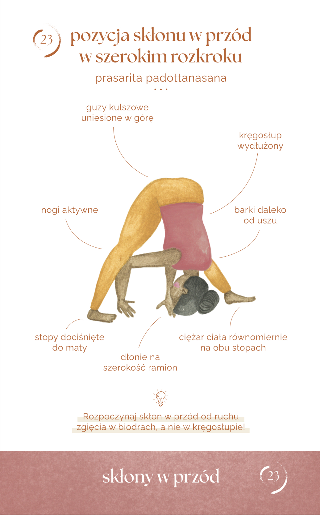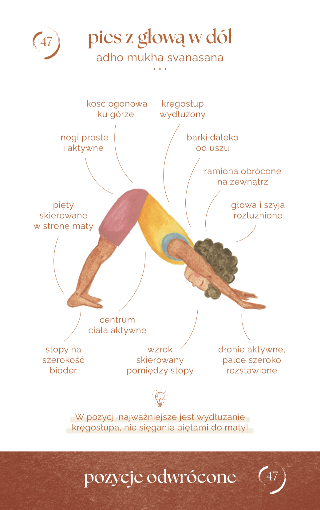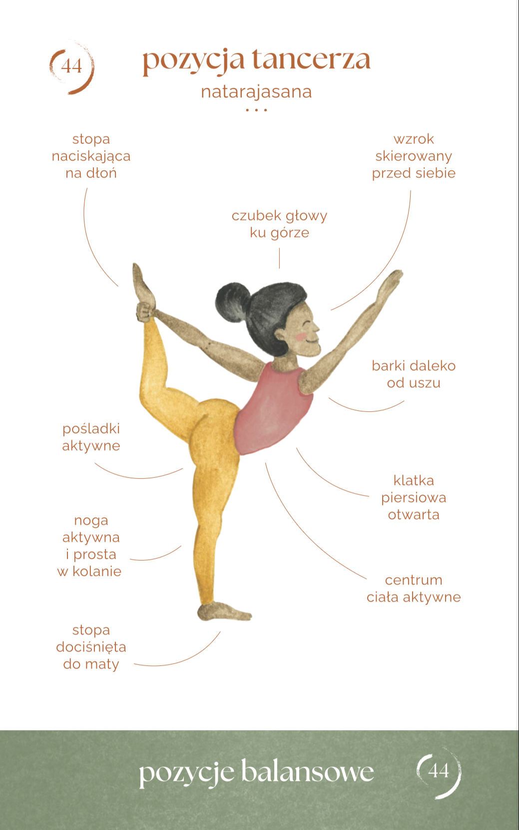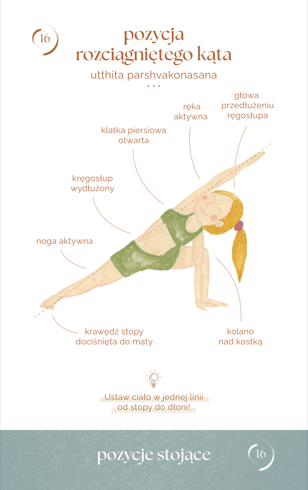 Każda karta zawiera kluczowe informacje potrzebne do bezpiecznego i świadomego wykonania asany – bez potrzeby sięgania po książki czy internet.